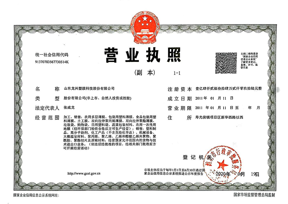 • 龍興塑膜營業執照